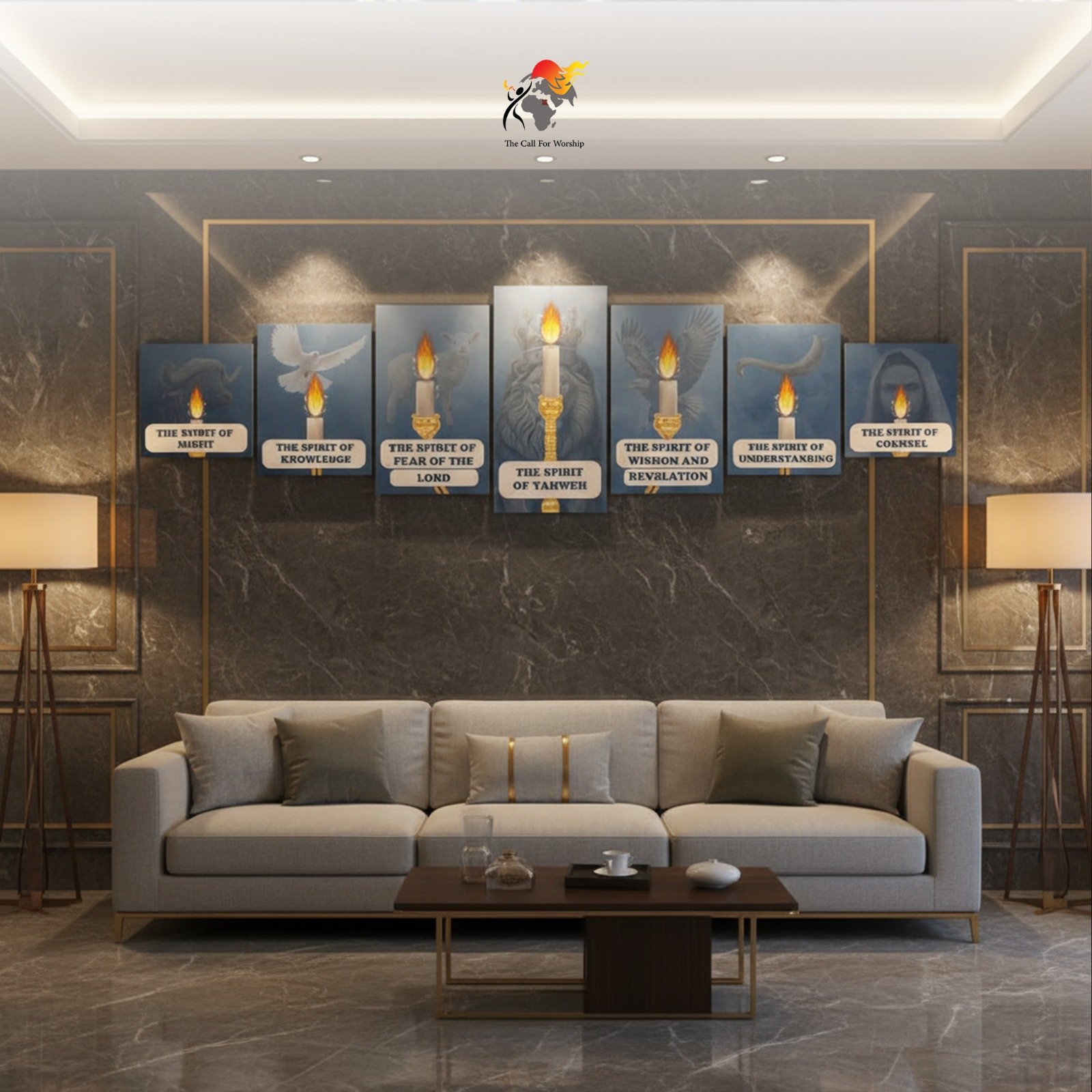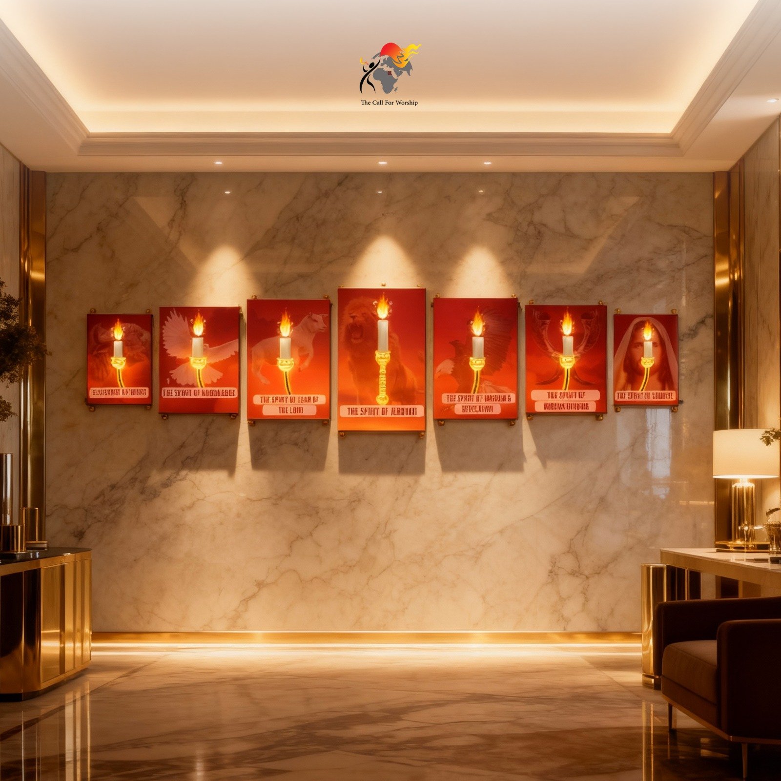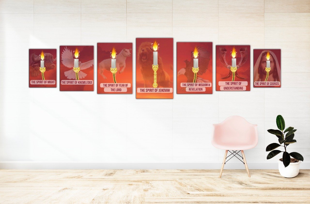 Transform your wall into a sacred narrative with this unique artwork: seven individual panels that, when arranged together, form the complete image of the biblical lampstand with seven flames—each representing one of the Seven Spirits of God sent out into all the earth, as described in the books of Isaiah and Revelation.