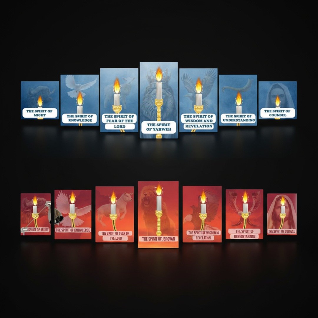 – Spirit of Counsel: Human face with a flame – symbol of divine guidance.